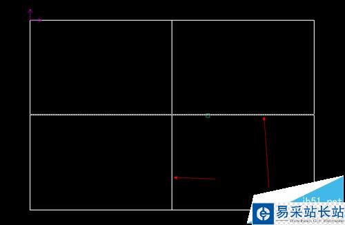 2、將這個矩形劃分為相同的4部分,圖中所示三角就是此線段的中點,只留下左上角的那一部分,其余的刪除。