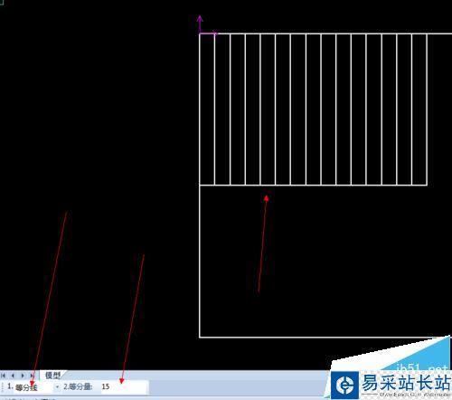 3、在左上角的那部分里,長和寬分為15份和10份。用等分線命令,多余的線條用裁剪裁去。
