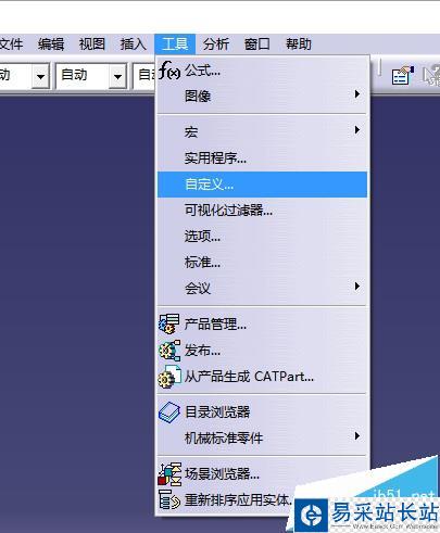 1、在工具欄的任意空白位置點擊右鍵,在右鍵菜單選擇“自定義…”或者選擇菜單命令“工具”——“自定義…”