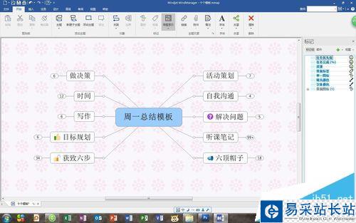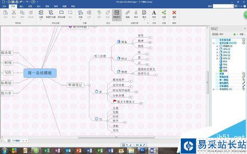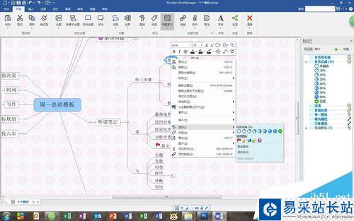 8、選擇需要加入任務百分比標記的主題,單擊鼠標右鍵,使用彈出菜單中圖標欄內的圖標