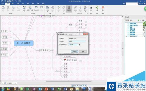 6、現在開始新建導圖標記,首先是任務完成分類下的標記,用鼠標右鍵對其點擊一下,彈出菜單,選擇新建任務內百分比