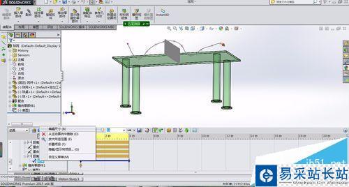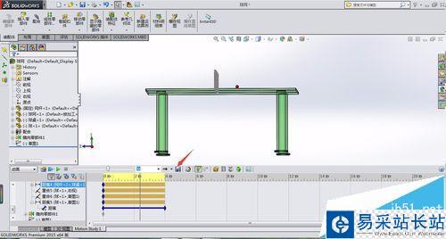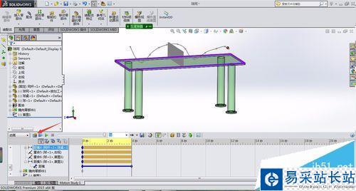7、打開左下角的運動算例,設置運動時間為4秒,將時間條拉至4秒位置,編輯距離尺寸為1800毫米(看自己線條長度,可以隨意調整),全部如圖所示