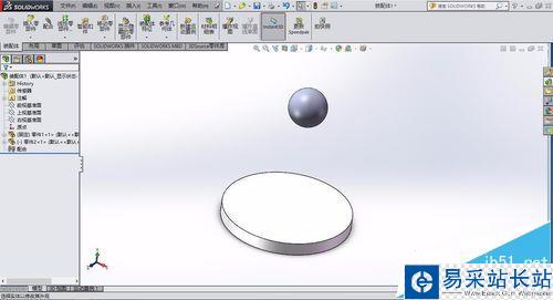 2、在使用引力之前,我們首先要繪制2個零件,我們可以繪制一個圓盤和一個球,分別使用拉伸凸臺命令和旋轉命令,分別命名為零件1和零件2即可完成模型的創建。