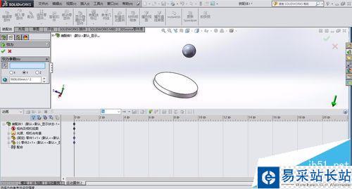 4、點擊新建運動算例,然后再下方彈出的動畫框中,點擊引力的小圖標,根據坐標方向,我們選擇Y周方向,即為引力的方向。
