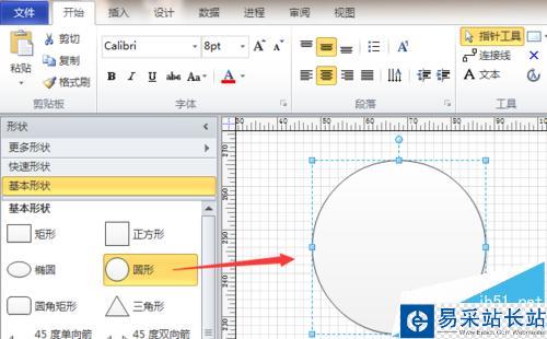 2、接著,從左側形狀欄中將“圓形”拉入右側的圖形編輯區域,如圖所示。