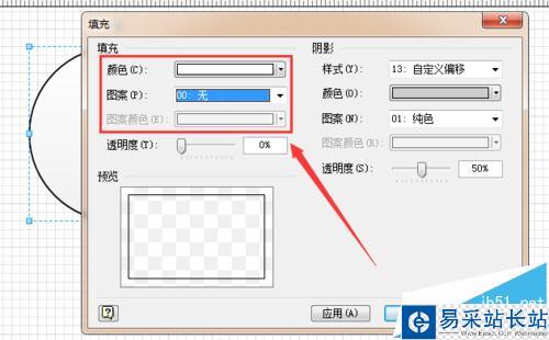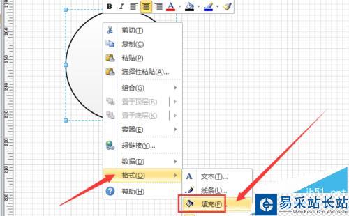 5、選中圓形,單擊鼠標右鍵,選擇“形狀”-“填充”選項,對其內部進行編輯,如圖所示。