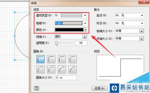 4、線型主要是調整為“黑色”、“1pt粗”和“直線”,如圖所示。