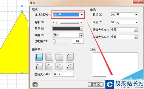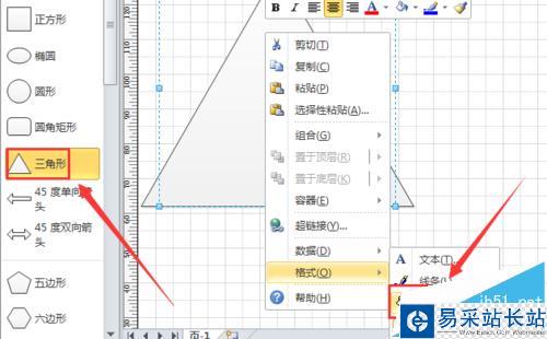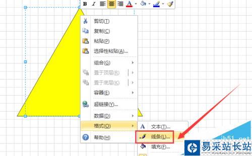 3、繼續單擊鼠標右鍵,選擇“格式”-“線條”,將三角形的線條設置為“無”,如圖所示。