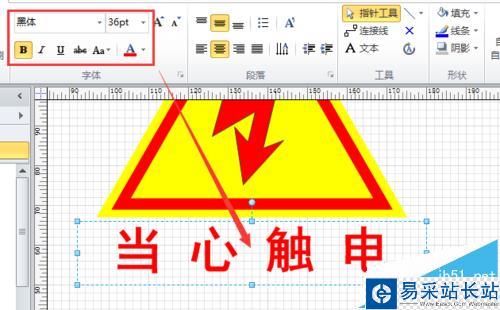 8、將文字擺放到合適的位置,即可看到【當心觸電】字樣的標志,如下圖所示。