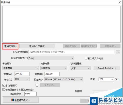 6、比如將autocad圖紙轉換為jpeg格式,可以點擊該轉換格式進入批量轉換界面,可以同時選擇多個圖紙進行轉換,非常方便,如下圖所示。