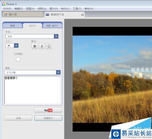 3、可以給照片編輯要顯示什么文字,都編輯好后點擊又下角創建影片