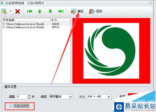 7、如果需要完成后預(yù)覽就勾選它,然后單擊確定,開始合成視頻相冊。