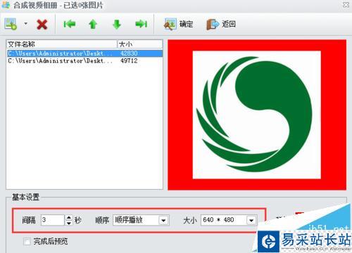 6、設(shè)置圖片播放時間間隔,視頻大小規(guī)格以及播放順序。播放順序有三種:順序播放,倒序播放和隨機播放。