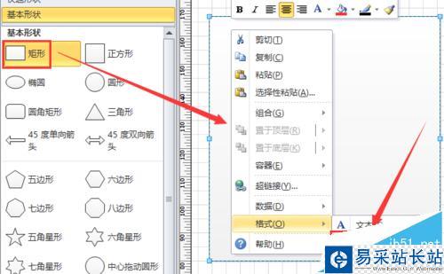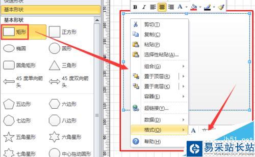 3、再從左側形狀欄拖入一個“矩形”,單擊鼠標右鍵,選擇“格式”-“線條”選項,將其線條設置為“純紅色,1pt”,如圖所示。