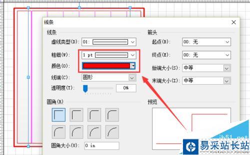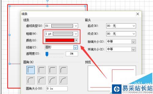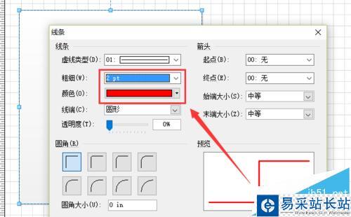 9、再用“折線圖”工具繪制一個小直角,將其線條屬性設置為“純紅色,1pt”,如圖所示。