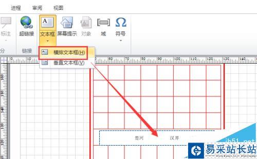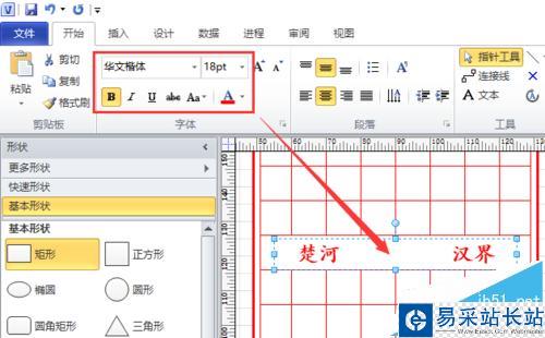 8、點選“插入”選項卡下“橫排文本框”工具,在剛剛調整的白條處輸入“楚河漢界”的字樣,并調整其大小、顏色、字體等,如圖所示。