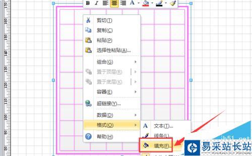 6、完成后,全選所有圖形,單擊鼠標右鍵,選擇“格式”-“填充”選項,將其填充屬性設置為“純白色,無陰影”,如圖所示。