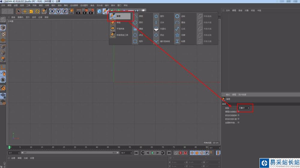 3、選擇畫筆,繪制樣條,畫筆類型默認貝塞爾
