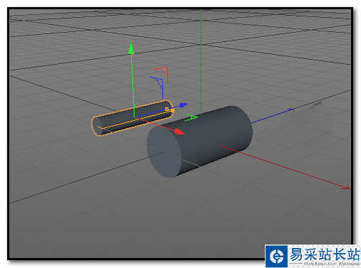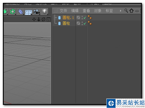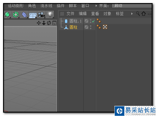 1、在場景中添加兩個圓柱基礎物體;生成了圓柱和圓柱1這兩個對象。同時選中這兩個對象,