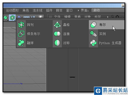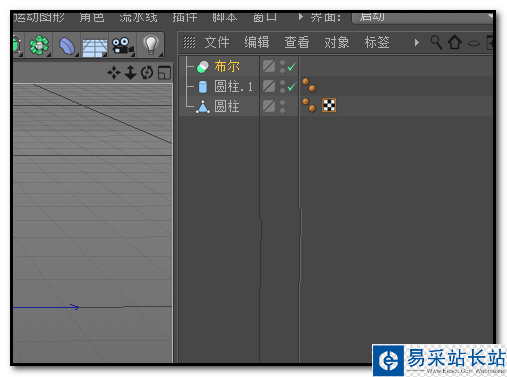 5、F1切換回透視視圖;添加布爾,我們目光定位在對象面板這里。