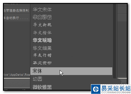 5、在用戶界面中,我們目光定位在:GUI字體,在這里,我們看到默認字體為宋體,右側有一個三角,是下拉按鈕,長按此按鈕 ,彈出各種字體的選項,