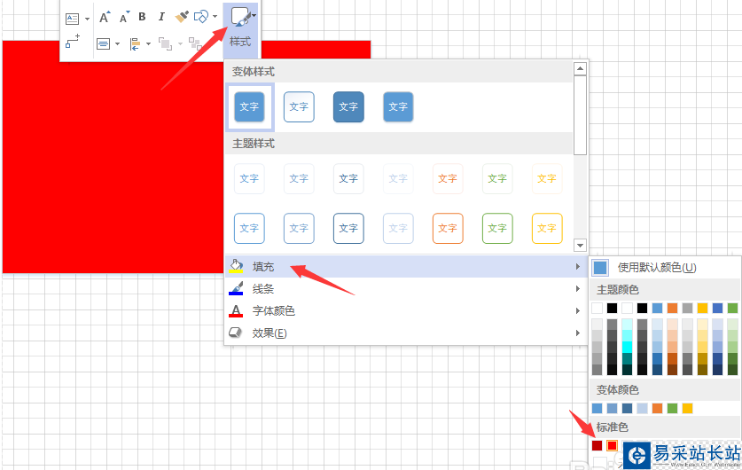 3、選擇這個矩形,然后選擇樣式—填充—紅色。