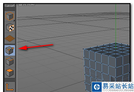 4、在左側這里選中點模式;我們要選中立方體的點,所以,操作前一定要轉為點模式。