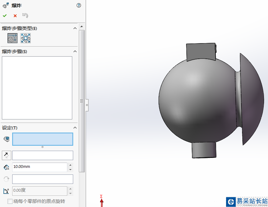 3、單擊“爆炸視圖”命令,然后彈出左側(cè)對(duì)話框。