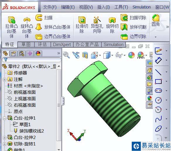solidworks中繪制零件模型很方便,想要繪制一個螺絲,該怎么繪制呢?下面我們就來看看詳細(xì)的教程。