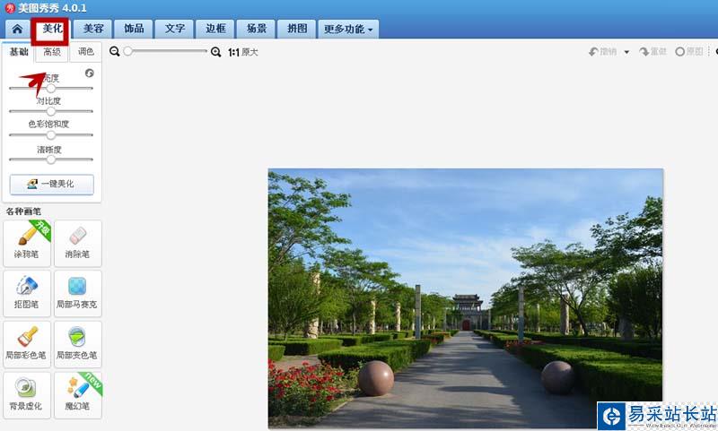 4、圖片出現在美圖秀秀操作頁面上,在單擊美化。