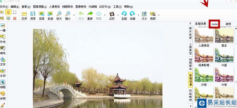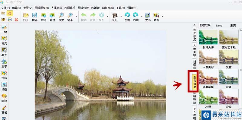 2、圖片出現在iSee圖片軟件頁面上。在iSee圖片軟件頁面上,單擊影樓效果。
