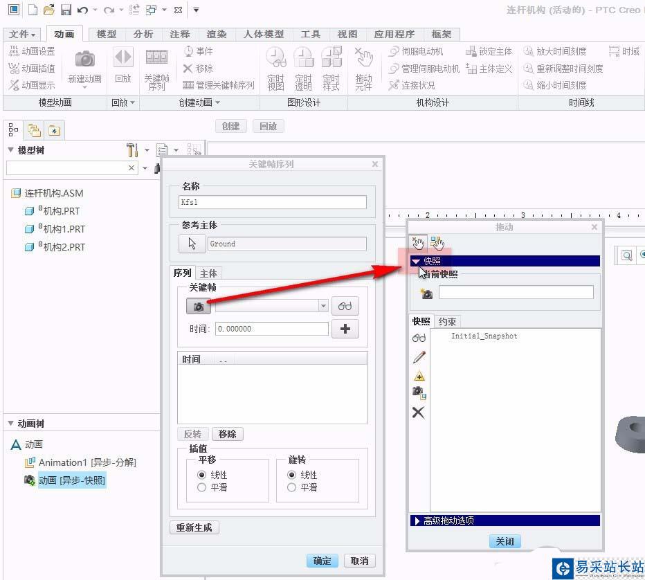 快照一中模型向快照二中模型位置的變化路徑是creo軟件自己生成的,無法更改。