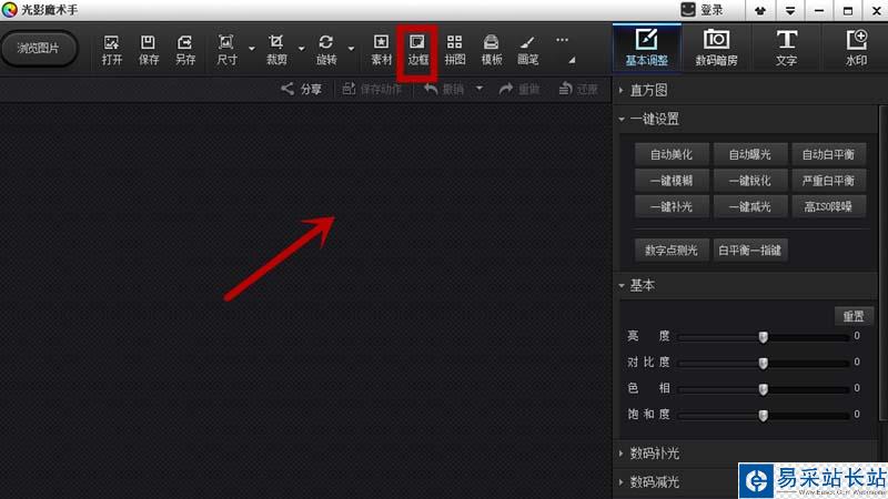 5、在光影魔術手操作頁面上單擊邊框,再單擊下拉框中的多圖邊框。