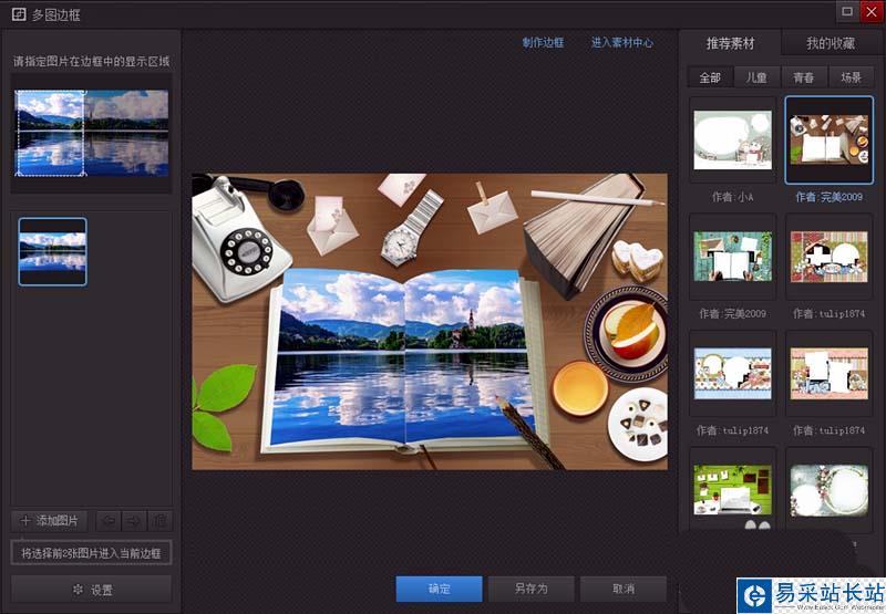 4、在光影魔術手操作頁面上單擊邊框,再單擊下拉框中的多圖邊框。