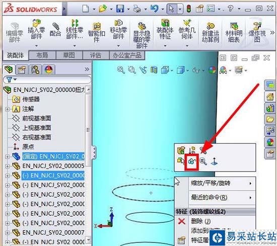 在使用solidworks軟件裝配時,有時候會出現很多螺紋裝飾線,當螺紋線比較多時,每一個都需要點擊右鍵隱藏,這非常麻煩,筆者針對此問題,通過摸索,得出一種解決方法,現分享一下。