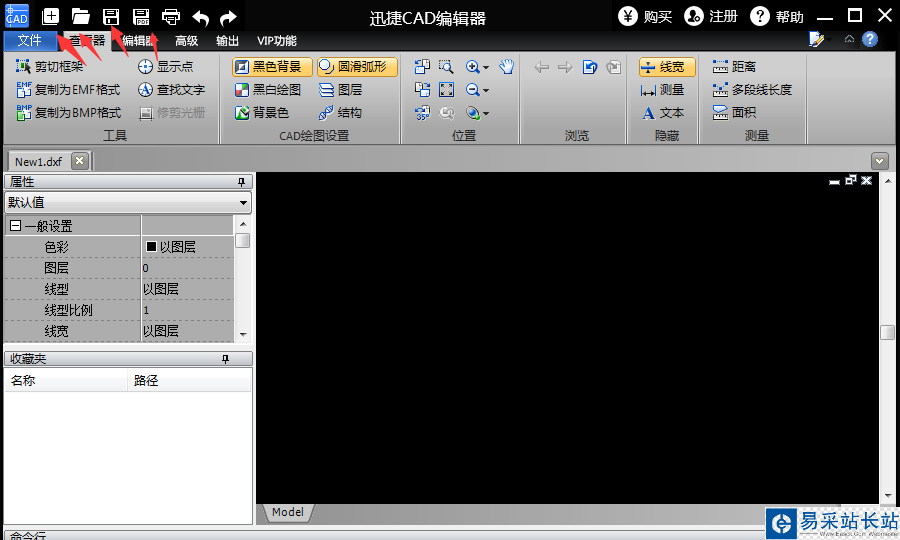 3、可以先看看“CAD編輯器”都有一些什么功能。在最上面的一排的功能是以圖標的形式顯示的。有“打開”“保存”“保存為PDF文檔格式”的等等的一些實用的功能。