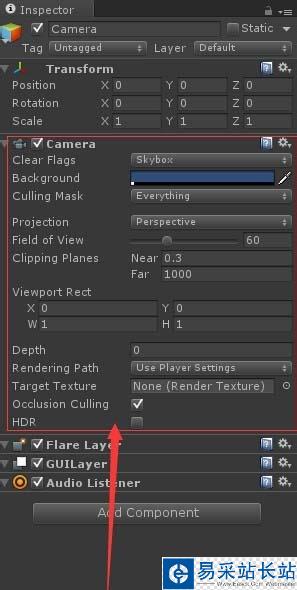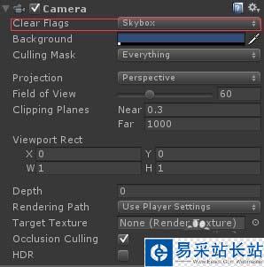 3、下面就簡單介紹一下各個部分。clear flags,清除標記。他決定屏幕哪一部分被清除。
