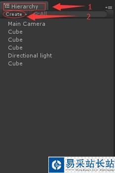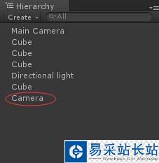 4、攝像機就上面的兩種。那么如何創建攝像機呢,很簡單。首先找到層級窗口,然后單擊創建按鈕,最后選擇camera(攝像機)就行了。