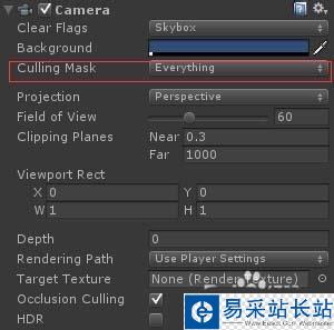 5、culling mask ,剔出遮罩。根據層,攝像機選擇性渲染。