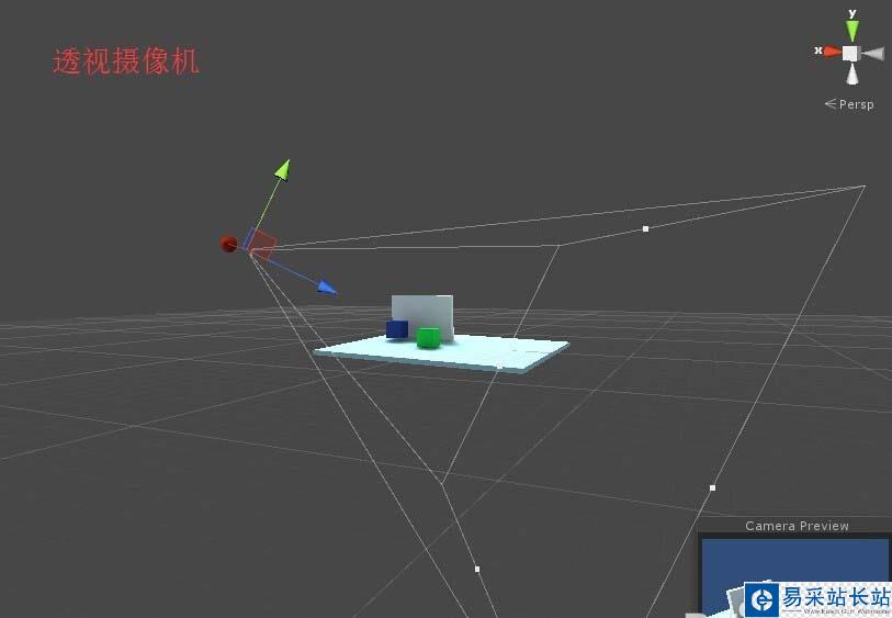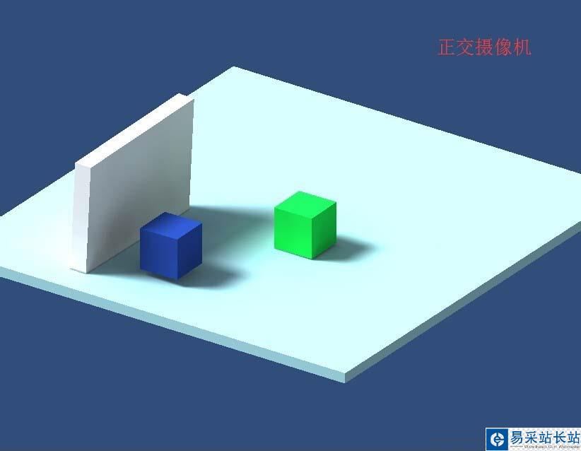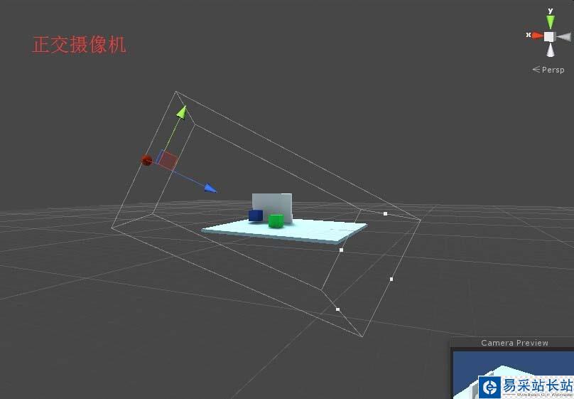 3、下面是透視攝像機與正交攝像機在場景中的展示。