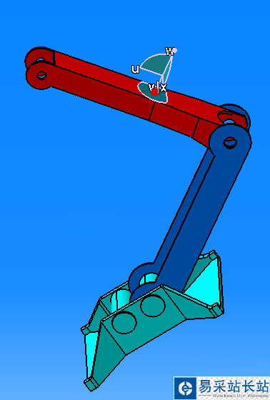 3、點(diǎn)擊U軸,拖動(dòng)坐標(biāo)系到合適位置釋放就可以了;移動(dòng)后效果如下。如果要返回原位置Ctrl+Z即可復(fù)位;
