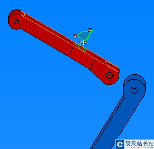 2、點(diǎn)擊羅盤(pán)原點(diǎn)(紅色點(diǎn)),然后拖動(dòng)羅盤(pán)到零件的任意平面,到達(dá)需要的位置后釋放鼠標(biāo)。此時(shí)坐標(biāo)系由XYZ變?yōu)閁VW(坐標(biāo)系顏色變成綠色);