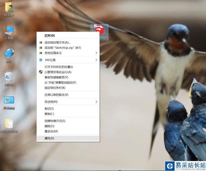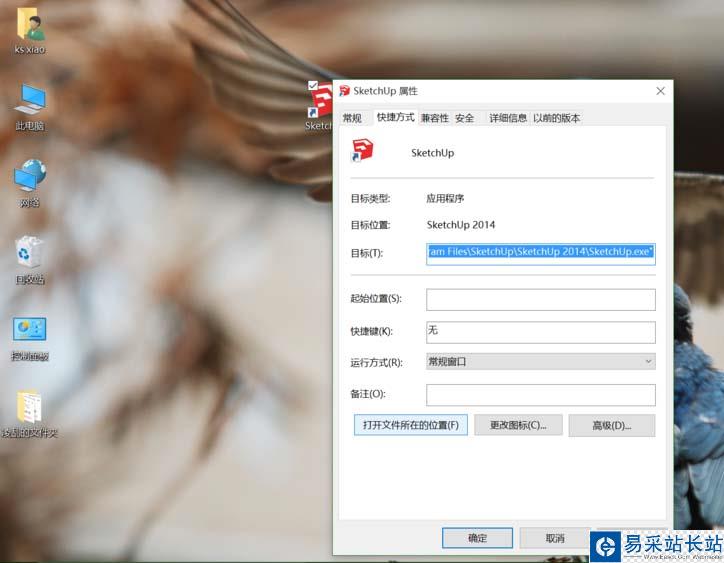 1、在桌面sketchup的快捷圖標上右鍵,點擊屬性。因為SketchUp.dat文件存在于軟件安裝路徑中,如果你知道軟件安裝在電腦的什么地方,這一步可以不用做。