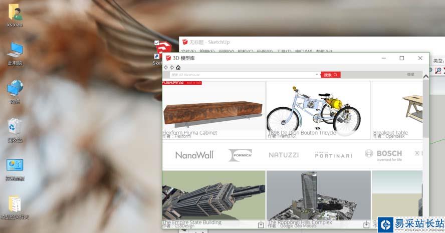 7、再次打開sketchup,可以發(fā)現(xiàn)已經可以訪問3D模型庫了。然后就可以下載你需要的模型,只要可以搜索得到。