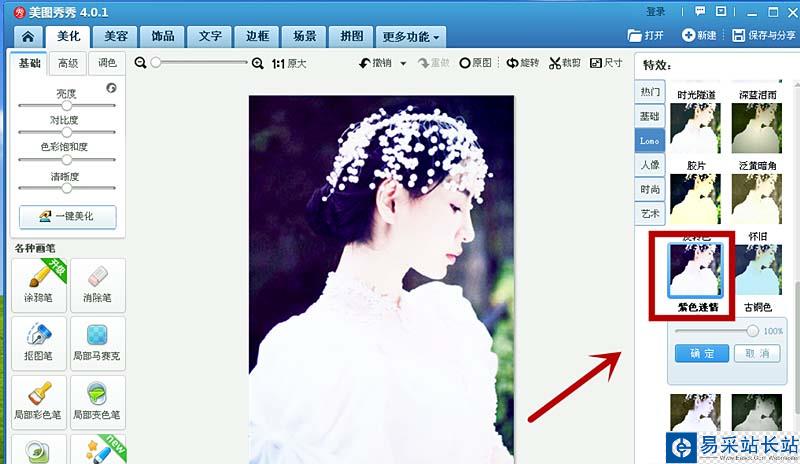 美圖秀秀具有多功能的圖像編輯工具,是一款的免費軟件。易學容易操作,能快速制作出好品質的圖片效果,下面介紹用美圖秀秀如何制作紫色迷情圖片?
