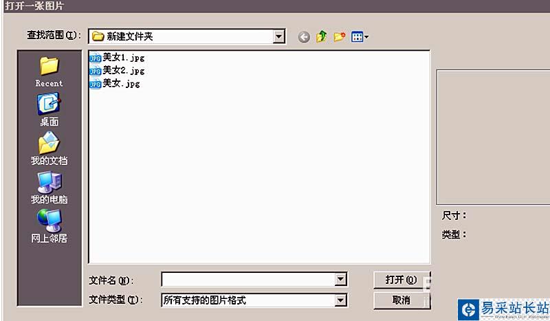 3、在打開一張圖片的對話框中,找到美女名稱打開。
