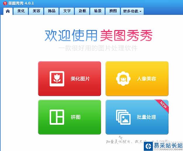 1、打開美圖秀秀軟件,進入美圖秀秀圖片處理軟件界面。