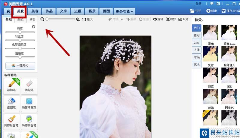 4、美女圖片出現在頁面上,點擊美化。