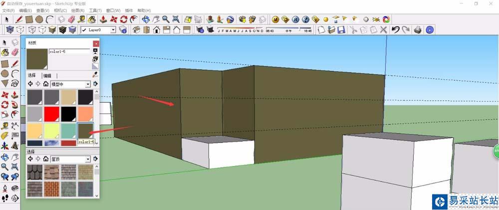 7、點擊材質的種類之后,再次直接點擊我們的模型上,即可進行顏色的填充,直接填充的時候,會直接進行一組的填充,進行部分填充需要進入組內填充。