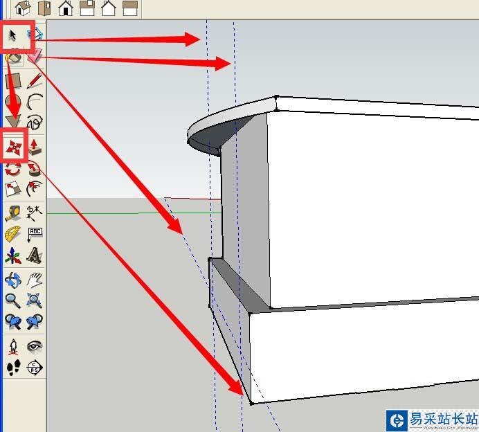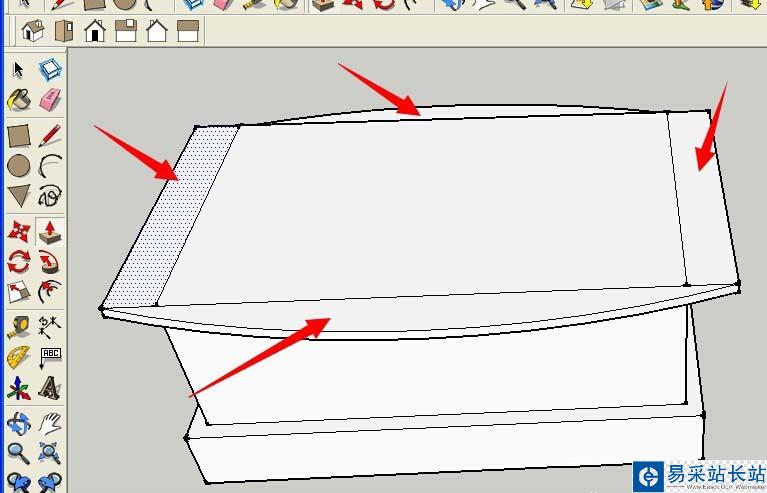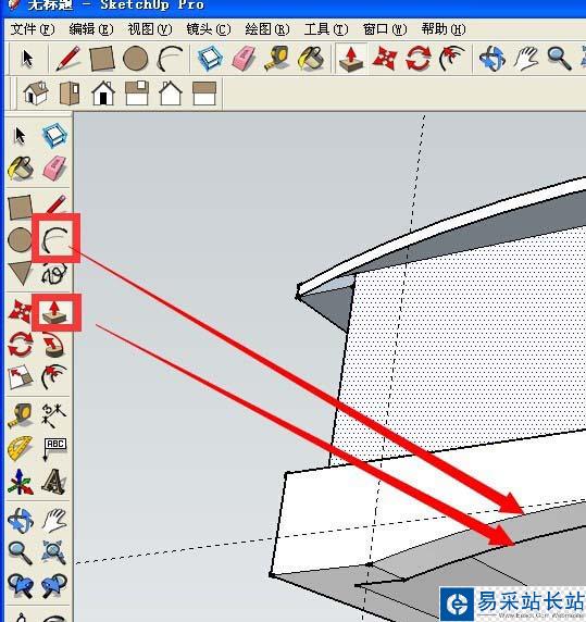 13、再次用圓弧工具盒推拉工具按前面的操作一遍后面,效果如下